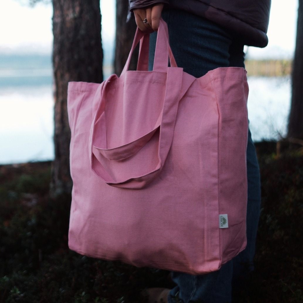 En rejäl och funktionell tygkasse i ekologisk bomull i färgsättningen rosa, färgad enligt GOTS-certifieringens krav. Stilren och snygg kasse. Den har en botten och rymmer därför dina varor på ett bra sätt. Väldigt rymlig! Den har dubbla handtag så att du kan välja om du vill bära den i handen eller på axeln. Tyget i kassen är riktigt tjockt och slitstarkt vilket gör att den håller i många år! Toppen att handla livsmedel i, att ha med på äventyret, pickniken, som strandväska eller träningsväska. Beställ gärna en extra så du alltid kan ha en i bilen eller barnvagnen.